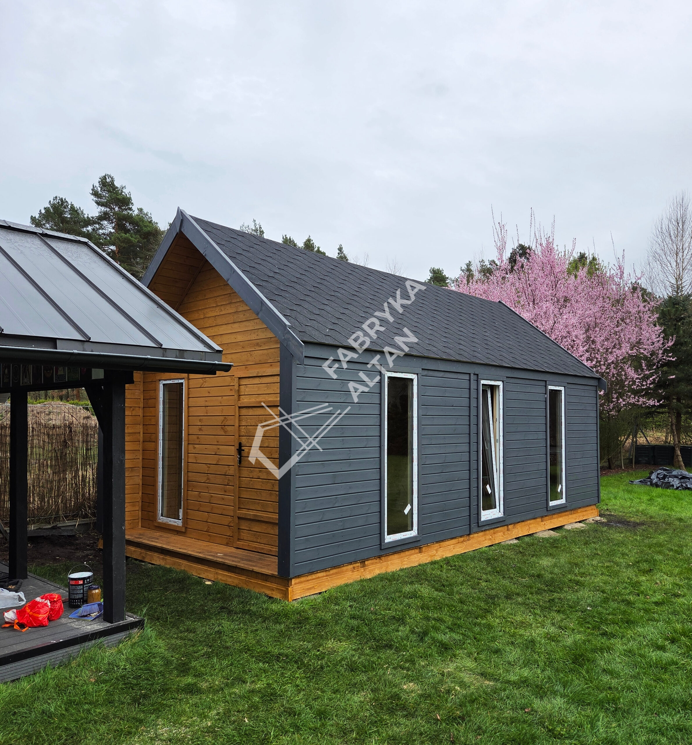 - Domek wykonany z drewna sosnowego i świerkowego I gat.